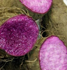 近几年来,我司研究中心对其进行了研究,收集和分析了它的成分与营养生理功能,发现其富含黏液质、多糖、蛋白质、淀粉及矿 物质元素,特别是花青素和钾含量比较高。花青素是纯天然的抗衰老的营养补充剂,它的抗氧化性能比维生素E高出五十倍,比维生素c 出二十倍。它不但能防止 皮肤皱纹的提早生成,还可维持正常的细胞连结、血管的稳定、增强微细血管循环、提高微血管和静脉的流动,进而达到异常皮肤的迅速愈合。紫山药还含有尿囊 素、薯蓣皂甙等有利健康的功能性生物活性成分,营养及药用价值与怀山药相当。